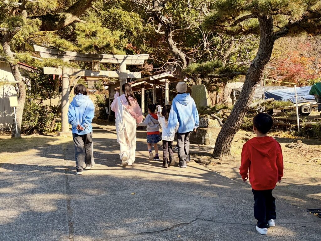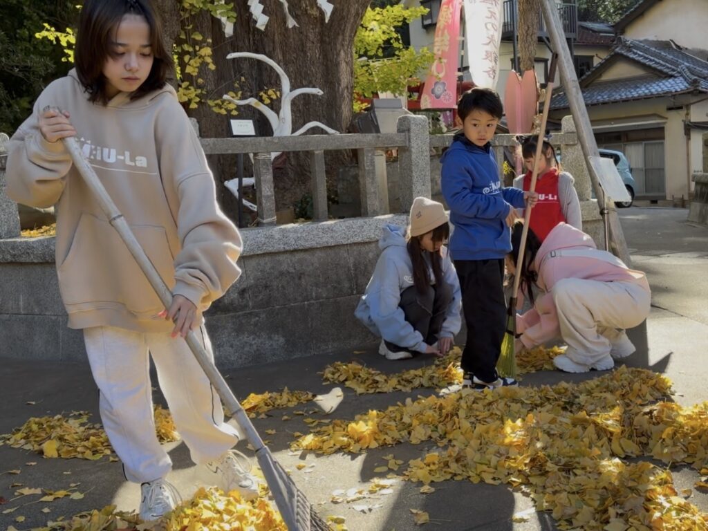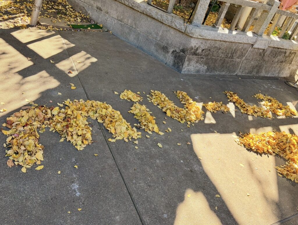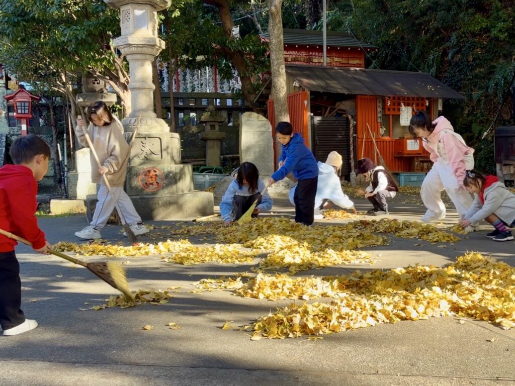 ■まずは海南神社へ!お参り&落ち葉アートに挑戦しました