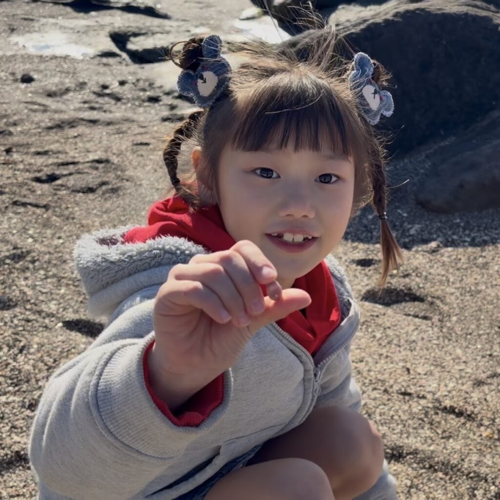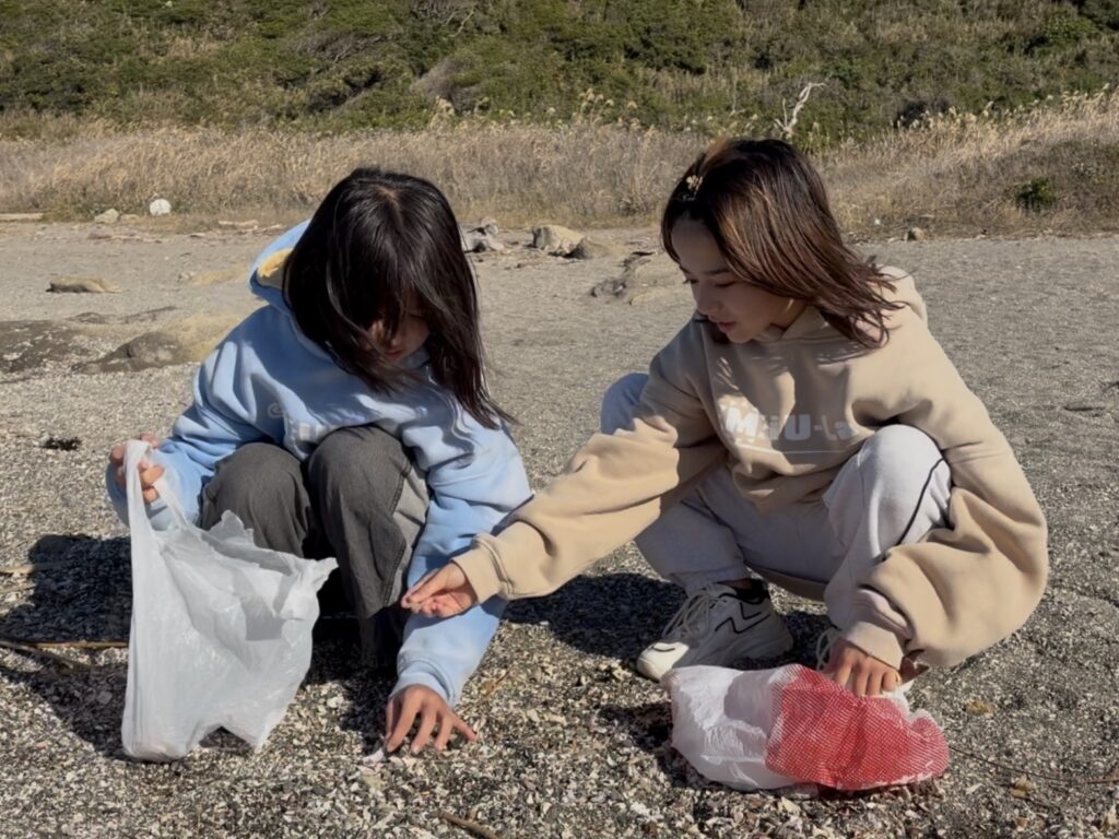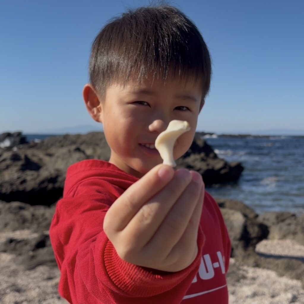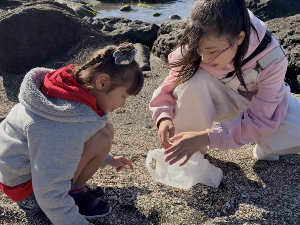 そして海では、クリスマスイベントのリースづくりの材料になる貝を拾いました。