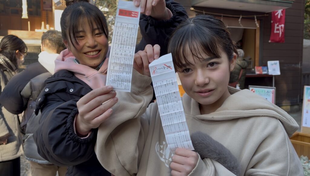 新年ということで、もちろんおみくじも引きました。