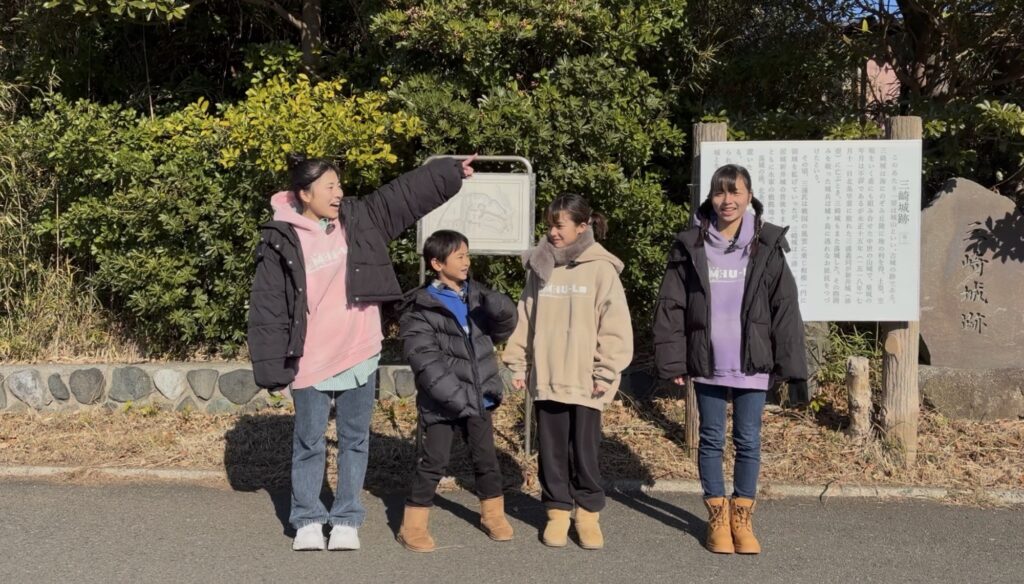 そして後半は三崎城城跡へ。市役所のすぐ近くにある石碑や看板を見ながら、「ここにお城があったんだ…!」と、この土地の歴史を実感させてくれる時間になりました。昔と今の地図を比較してみると、意外と広くて想像が一気にリアルになります。